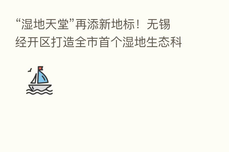 “湿地天堂”再添新地标!无锡经开区打造全市首个湿地生态科普教育基地