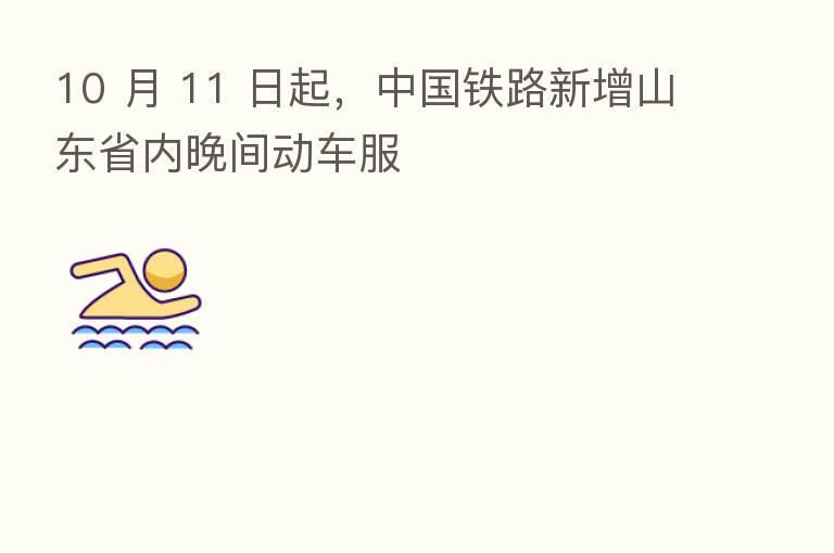 10 月 11 日起,中国铁路新增山东省内晚间动车服