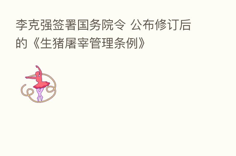 李克强签署国务院令 公布修订后的《生猪屠宰管理条例》