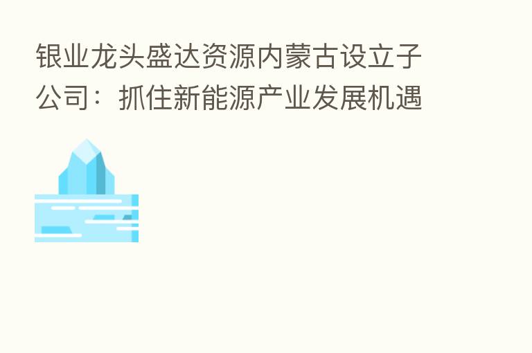 银业龙头盛达资源内蒙古设立子公司:抓住新能源产业发展机遇