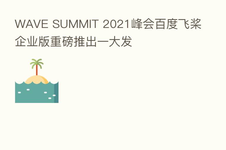 WAVE SUMMIT 2021峰会百度飞桨企业版重磅推出一大发