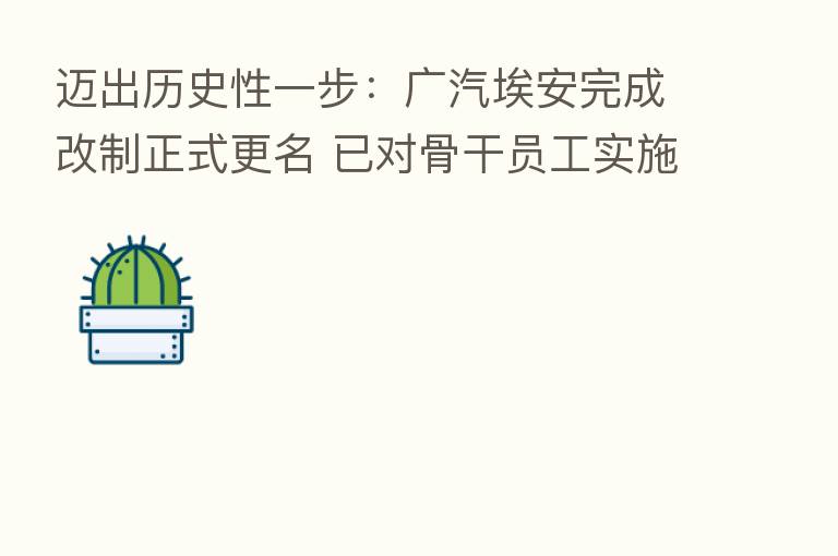 迈出历史性一步:广汽埃安完成改制正式更名 已对骨干员工实施股权激励