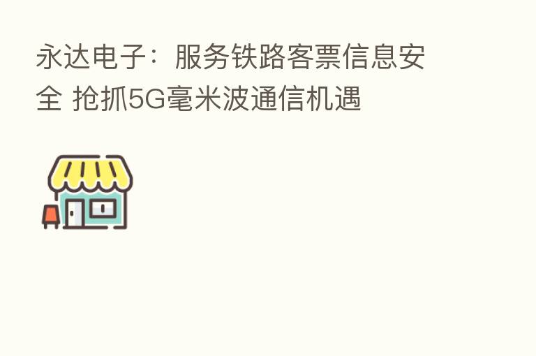 永达电子:服务铁路客票信息安全 抢抓5G毫米波通信机遇