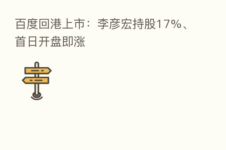 百度回港上市:李彦宏持股17%、首日开盘即涨