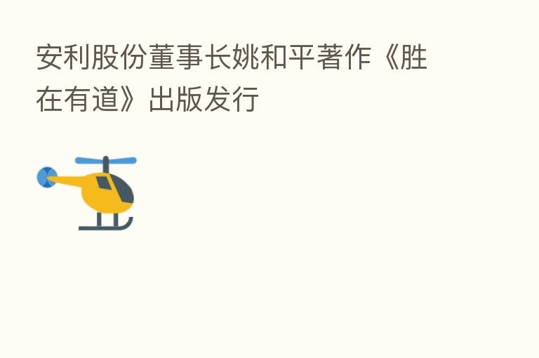 安利股份董事长姚和平著作《胜在有道》出版发行