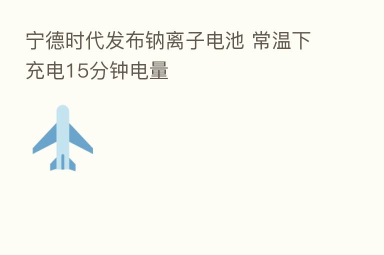宁德时代发布钠离子电池 常温下充电15分钟电量