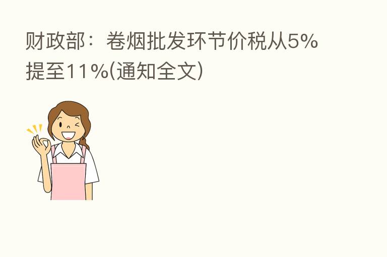 财政部:卷烟批发环节价税从5%提至11%(通知全文)