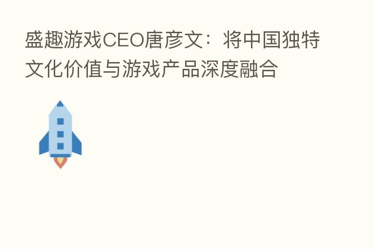 盛趣游戏CEO唐彦文:将中国独特文化价值与游戏产品深度