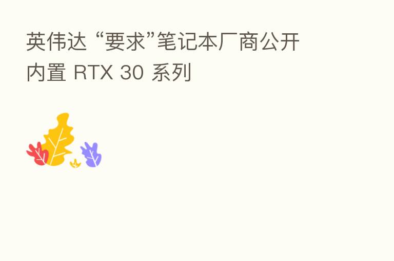 英伟达 “要求”笔记本厂商公开内置 RTX 30 系列