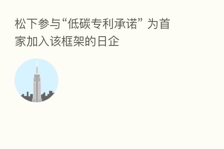 松下参与“低碳专利承诺” 为首家加入该框架的日企