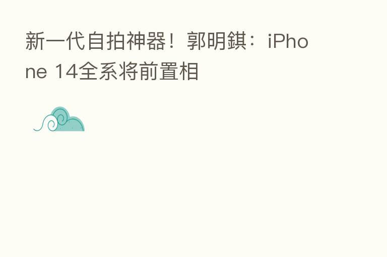 新一代自拍神器!郭明錤:iPhone 14全系将前置相