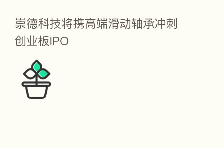 崇德科技将携高端滑动轴承冲刺创业板IPO