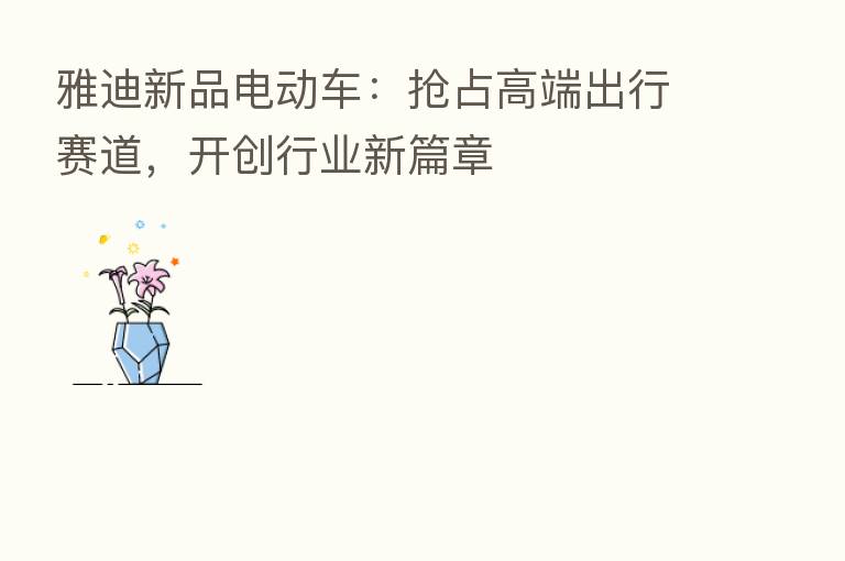 雅迪新品电动车:抢占高端出行赛道,开创行业新篇章