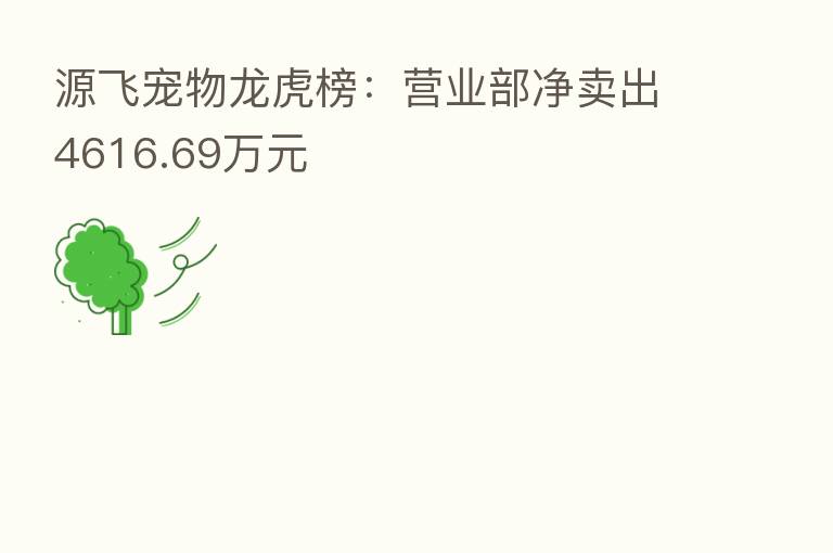 源飞宠物龙虎榜:营业部净卖出4616.69万元
