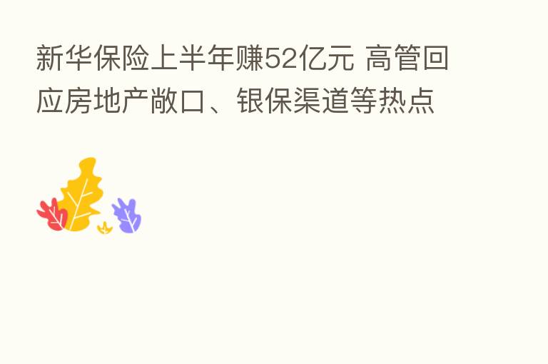 新华 上半年赚52亿元 高管回应房地产敞口、银保渠道等热点