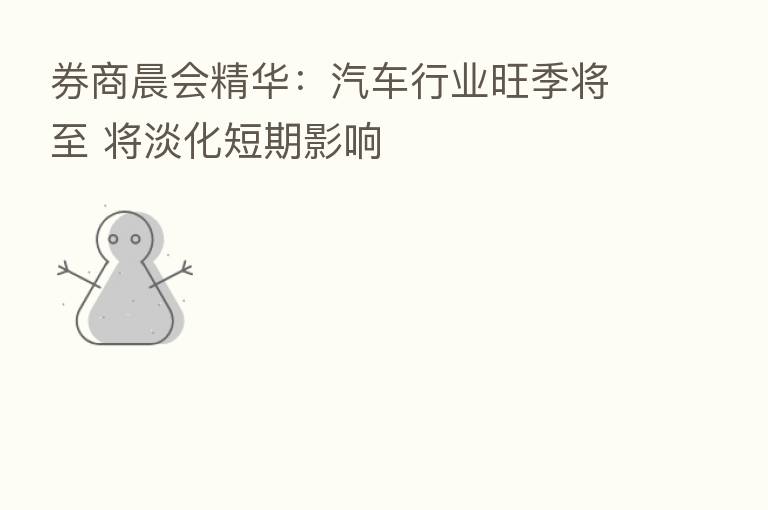 券商晨会精华:汽车行业旺季将至 将淡化短期影响
