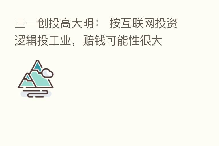 三一创投高大明: 按互联网投资逻辑投工业,赔前可能性很大