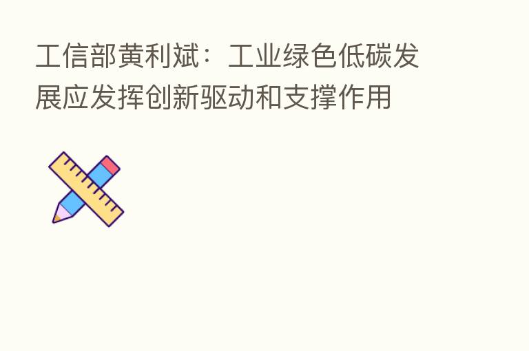 工信部黄利斌:工业绿色低碳发展应发挥创新驱动和支撑作用