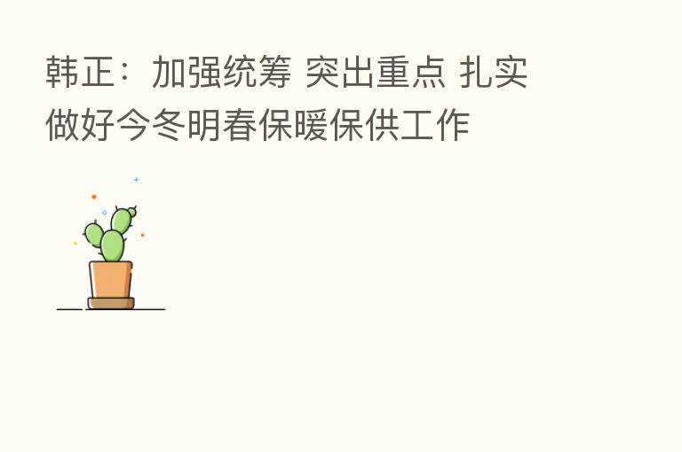 韩正:加强统筹 突出重点 扎实做好今冬明春保暖保供工作