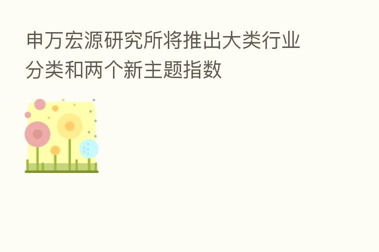 申万宏源研究所将推出大类行业分类和两个新主题指数