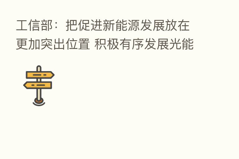 工信部:把促进新能源发展放在更加突出位置 积极有序发展光能源、硅能源、氢能源