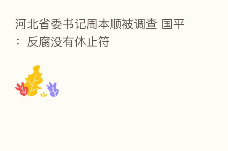 河北省委书记周本顺被调查 国平:反腐没有休止符