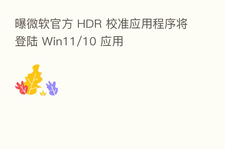 曝微软官方 HDR 校准应用程序将登陆 Win11/10 应用