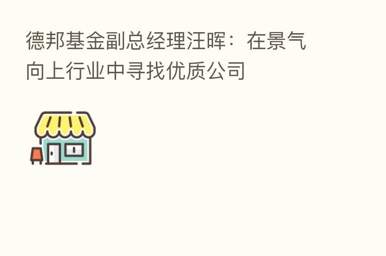 德邦基金副总经理汪晖:在景气向上行业中寻找优质公司