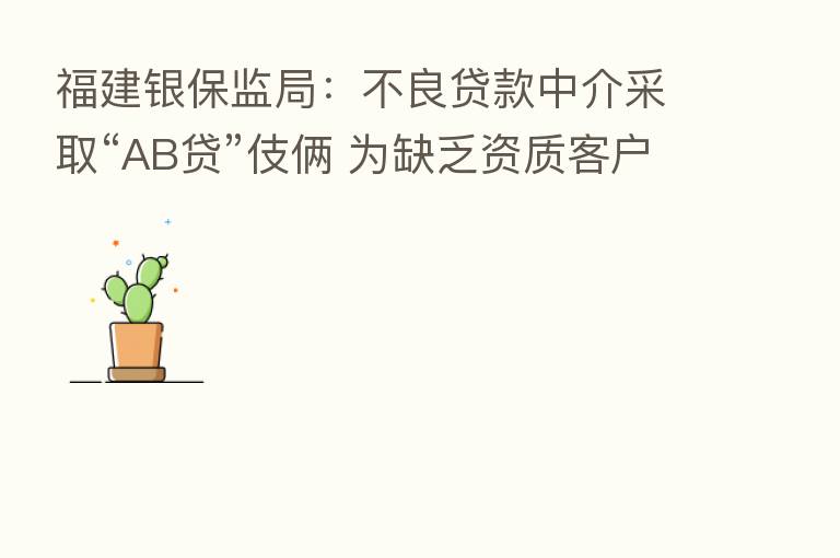 福建银保监局:不良贷款中介采取“AB贷”伎俩 为缺乏资质客户套取信贷资金