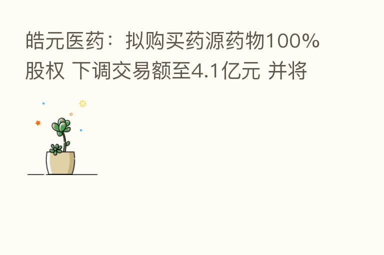 皓元医药:拟购买药源药物100%股权 下调交易额至4.1亿元 并将标的公司累计承诺净利润下调500万元
