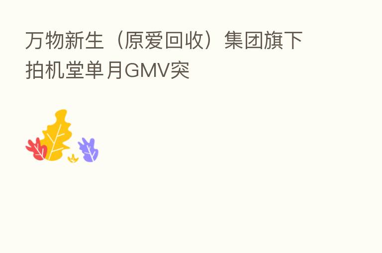 万物新生(原爱回收)集团旗下拍机堂单月GMV突