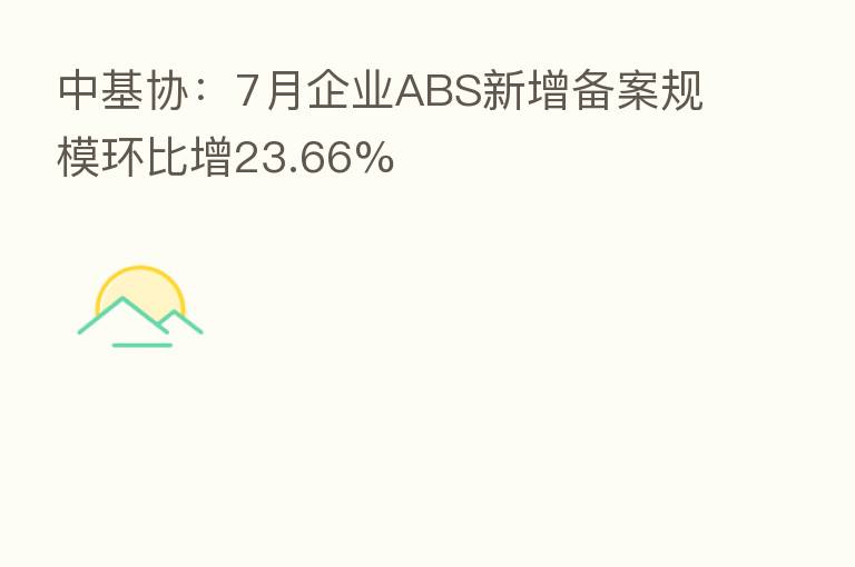 中基协:7月企业ABS新增备案规模环比增23.66%