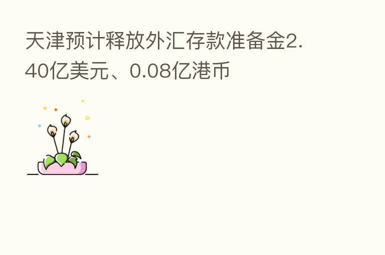 天津预计释放外汇存款准备金2.40亿美元、0.08亿港币