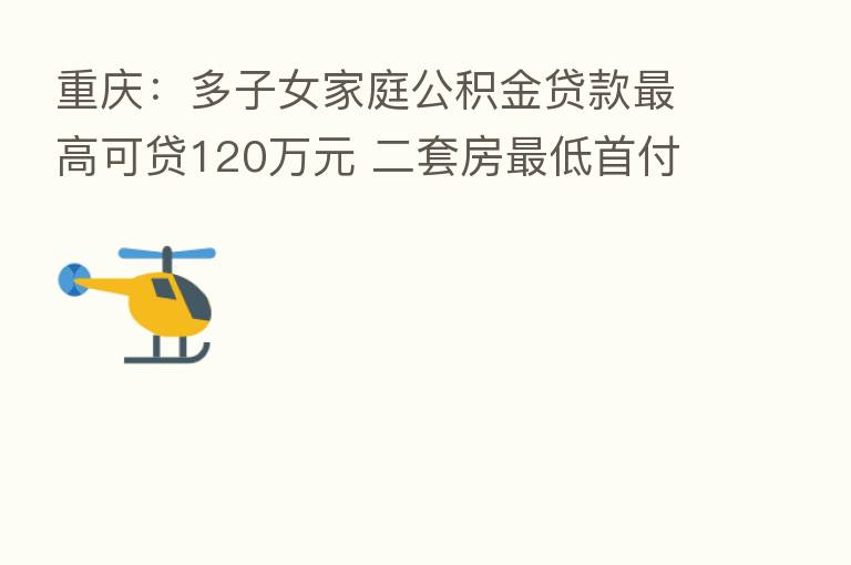 重庆:多子女家庭公积金贷款 高可贷120万元 二套房 低首付比25%