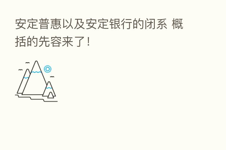 安定普惠以及安定银行的闭系 概括的先容来了!