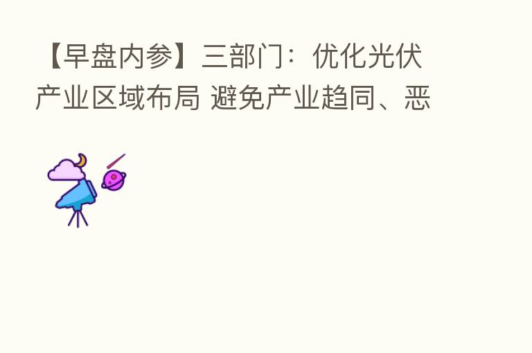 【早盘内参】三部门:优化光伏产业区域布局 避免产业趋同、恶性竞争和市场垄断