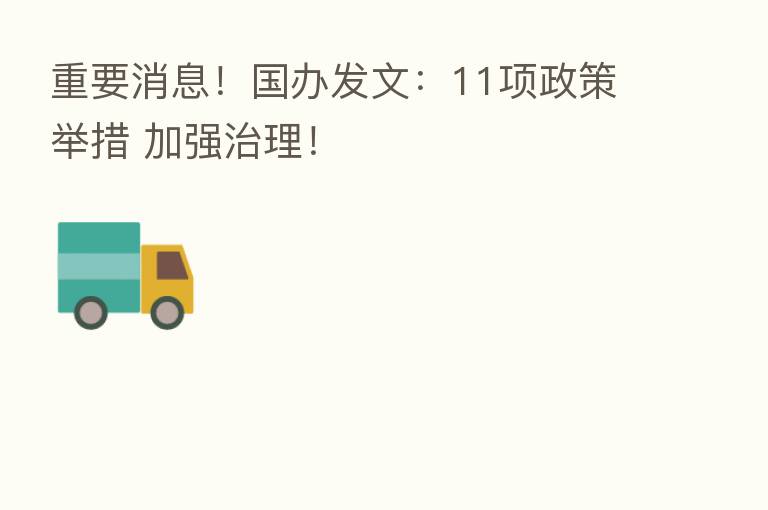重要消息!国办发文:11项政策举措 加强治理!