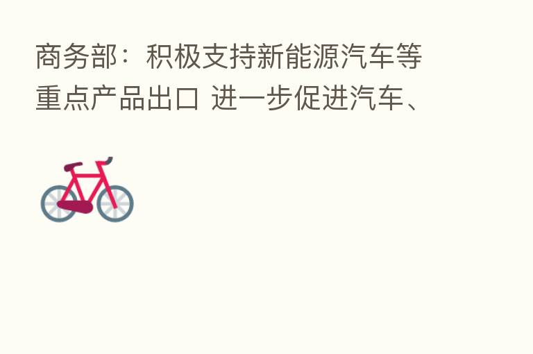 商务部:积极支持新能源汽车等重点产品出口 进一步促进汽车、家电、家居等重点领域消费