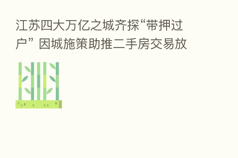 江苏四大万亿之城齐探“带押过户” 因城施策助推二手房交易放量