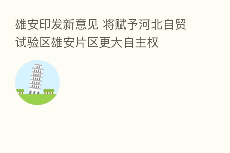 雄安印发新意见 将赋予河北自贸试验区雄安片区更大自主权