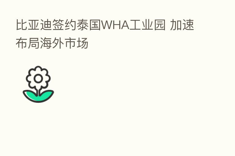 比亚迪签约泰国WHA工业园 加速布局海外市场