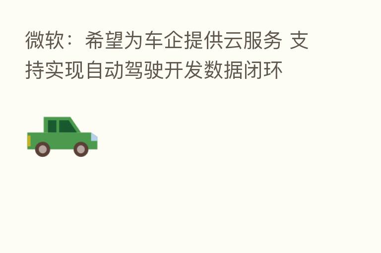 微软:希望为车企提供云服务 支持实现自动驾驶开发数据闭环