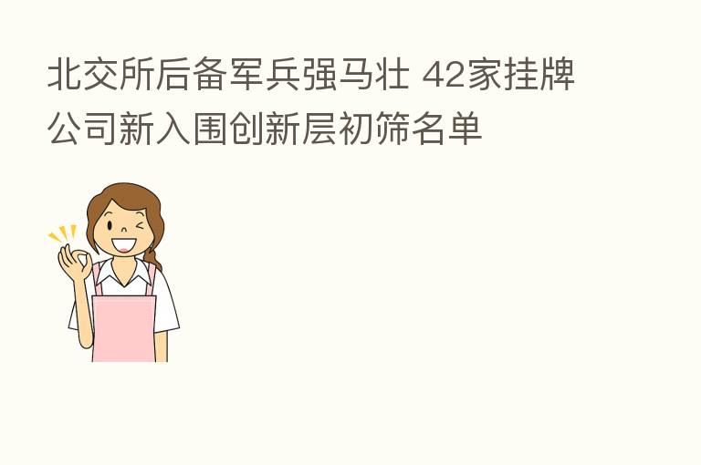 北交所后备军兵强马壮 42家挂牌公司新入围创新层初筛名单