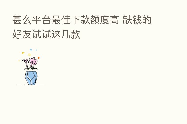 甚么平台 佳下款额度高 缺前的好友试试这几款