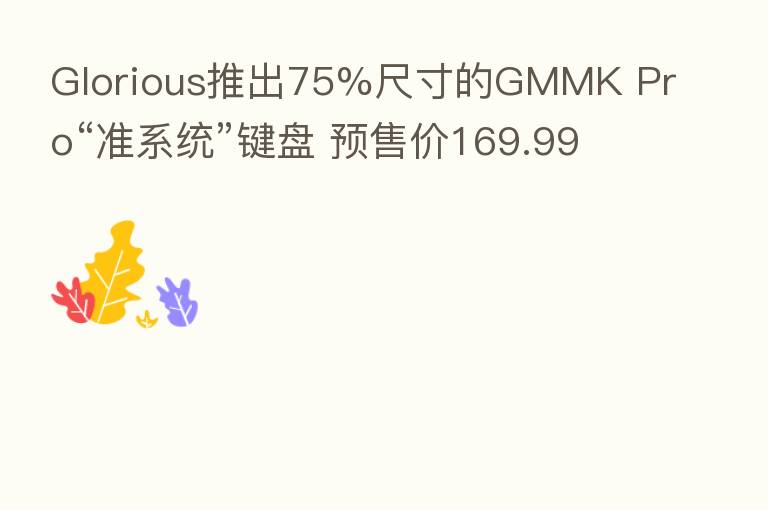 Glorious推出75%尺寸的GMMK Pro“准系统”键盘 预售价169.99美元