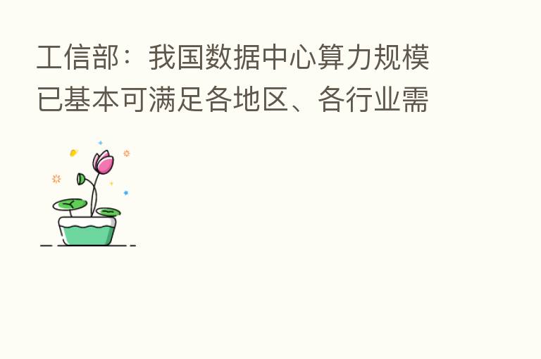 工信部:我国数据中心算力规模已基本可满足各地区、各行业需求