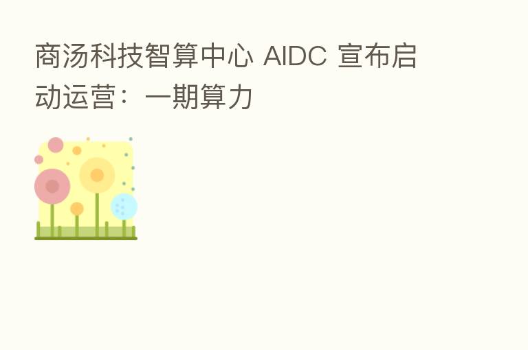 商汤科技智算中心 AIDC 宣布启动运营:一期算力