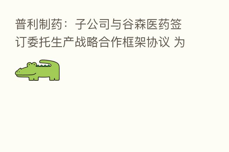 普利制药:子公司与谷森医药签订委托生产战略合作框架协议 为其提供片剂委托生产服务