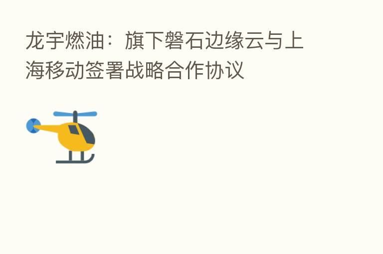 龙宇燃油:旗下磐石边缘云与上海移动签署战略合作协议