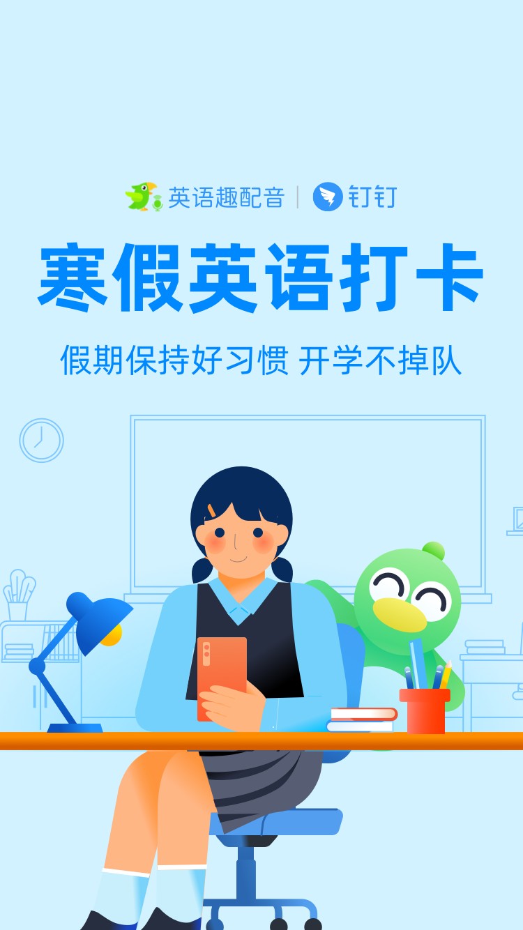 英语趣配音携手钉钉助力疫情防控,寒假英语停课不停学